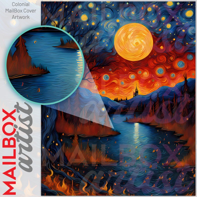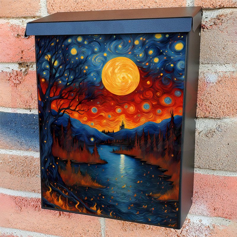 This Starry Night and Autumn Full Moon mailbox design was created by Krisztina Soos