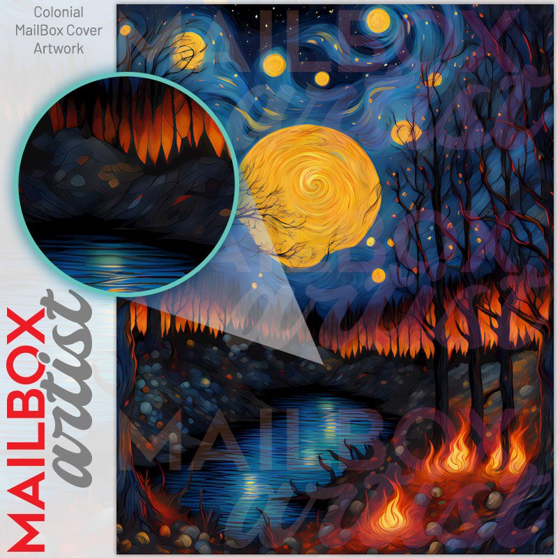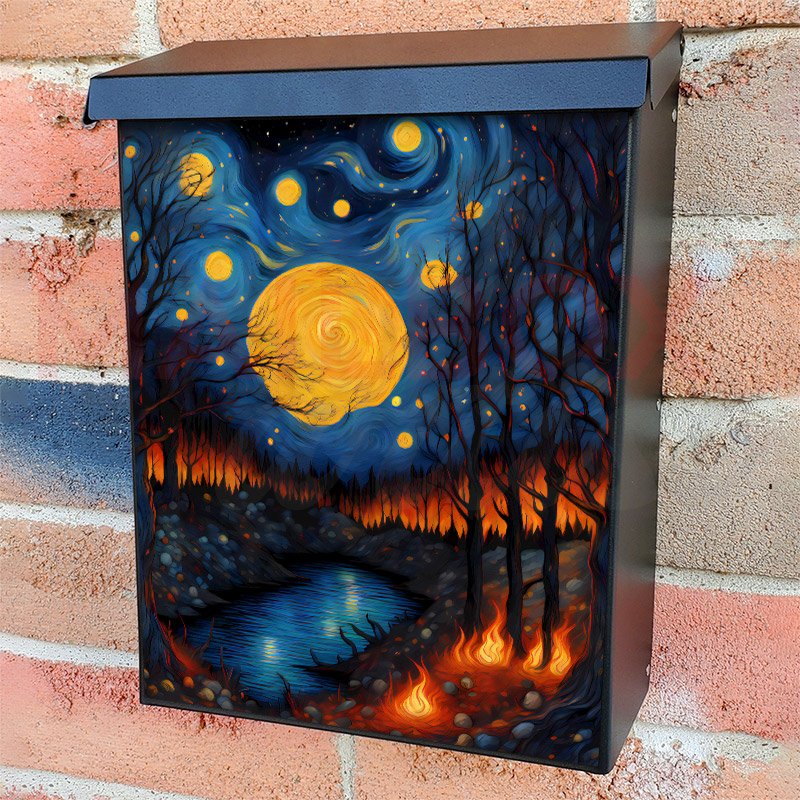 This Starry Night and Burning Amber mailbox design was created by Krisztina Soos