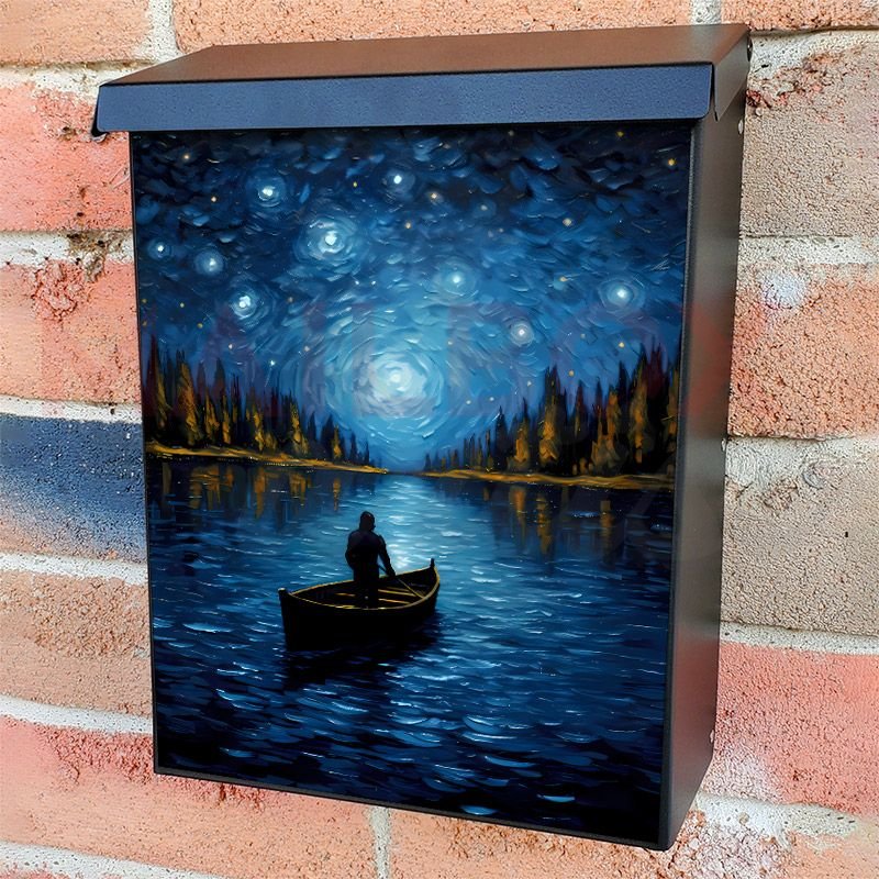 This Starry Night on the Lake #2 mailbox design was created by Krisztina Soos