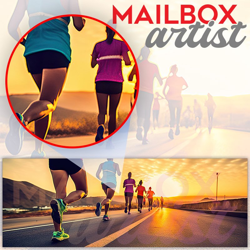This Start Up Of Runner Group Running On Sunrise On Road mailbox design was created by Krisztina Soos