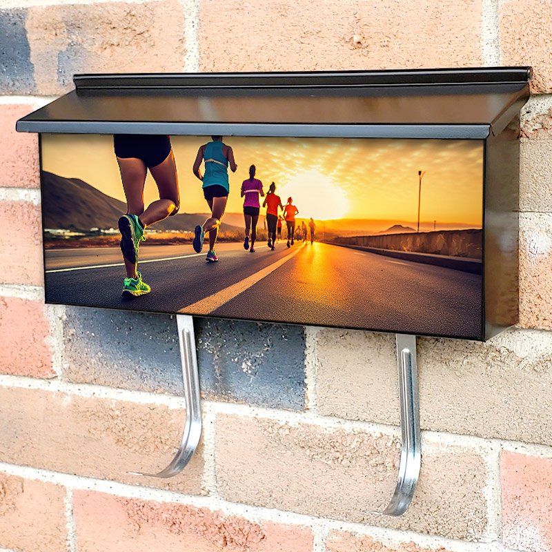 Applying your Start Up Of Runner Group Running On Sunrise On Road townhouse / ranch mailbox cover it’s pretty easy to convert your mailbox to a special and unique item. These covers require a flat surface, so they work with townhouse / ranch mailboxes that do not have any embossed decoration or signs. Magnetic mailbox covers work with steel boxes, for aluminum and plastic boxes we offer the self-adhesive vinyl covers. In case your mailbox doesn’t work with these covers, you can purchase the preinstalled cover on a brand new mailbox as well. Also, you can create your custom townhouse / ranch mailbox cover using you own pictures, adding your name, street number, etc.