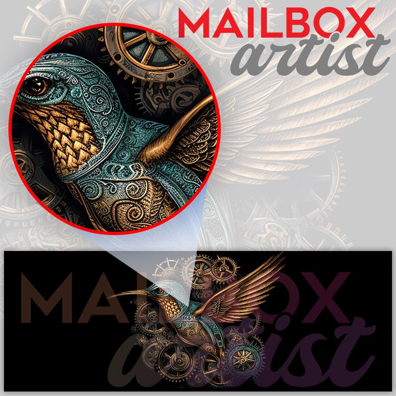 This Steampunk Hummingbird With Clockwork Gears Metal And Patina mailbox design was created by Krisztina Soos