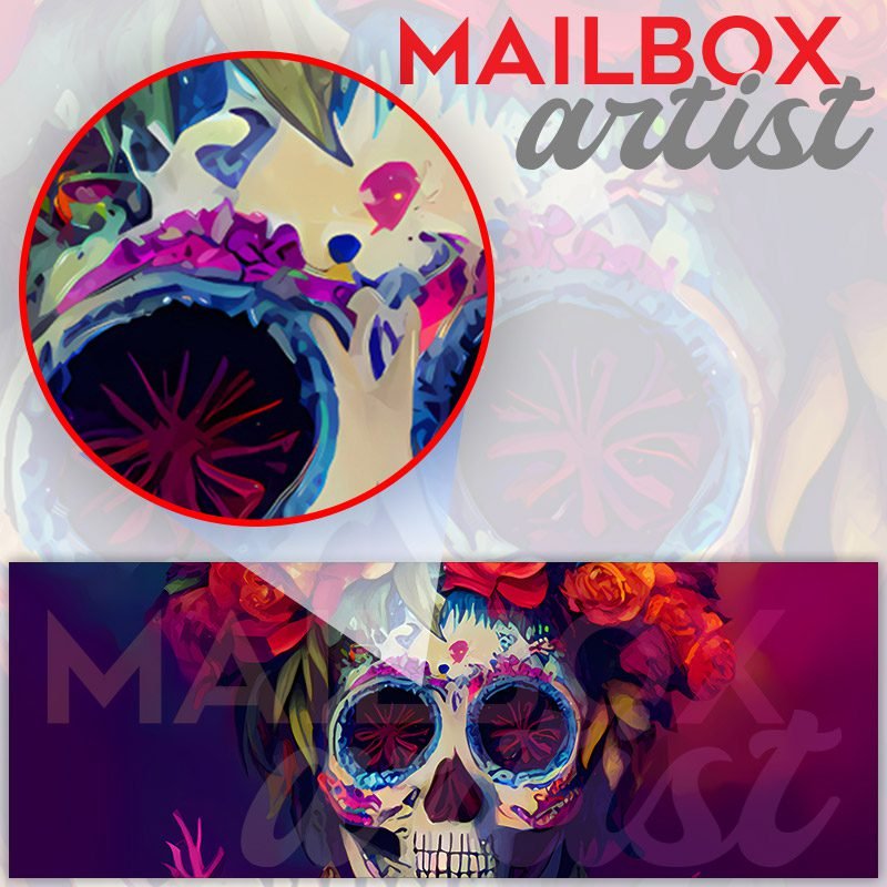 This Sugar Skull and Flowers #1 mailbox design was created by Krisztina Soos