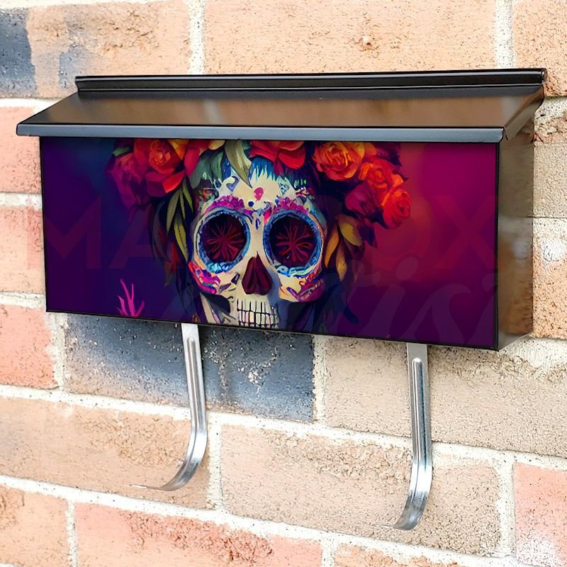 Applying your Sugar Skull and Flowers #1 townhouse / ranch mailbox cover it’s pretty easy to convert your mailbox to a special and unique item. These covers require a flat surface, so they work with townhouse / ranch mailboxes that do not have any embossed decoration or signs. Magnetic mailbox covers work with steel boxes, for aluminum and plastic boxes we offer the self-adhesive vinyl covers. In case your mailbox doesn’t work with these covers, you can purchase the preinstalled cover on a brand new mailbox as well. Also, you can create your custom townhouse / ranch mailbox cover using you own pictures, adding your name, street number, etc.