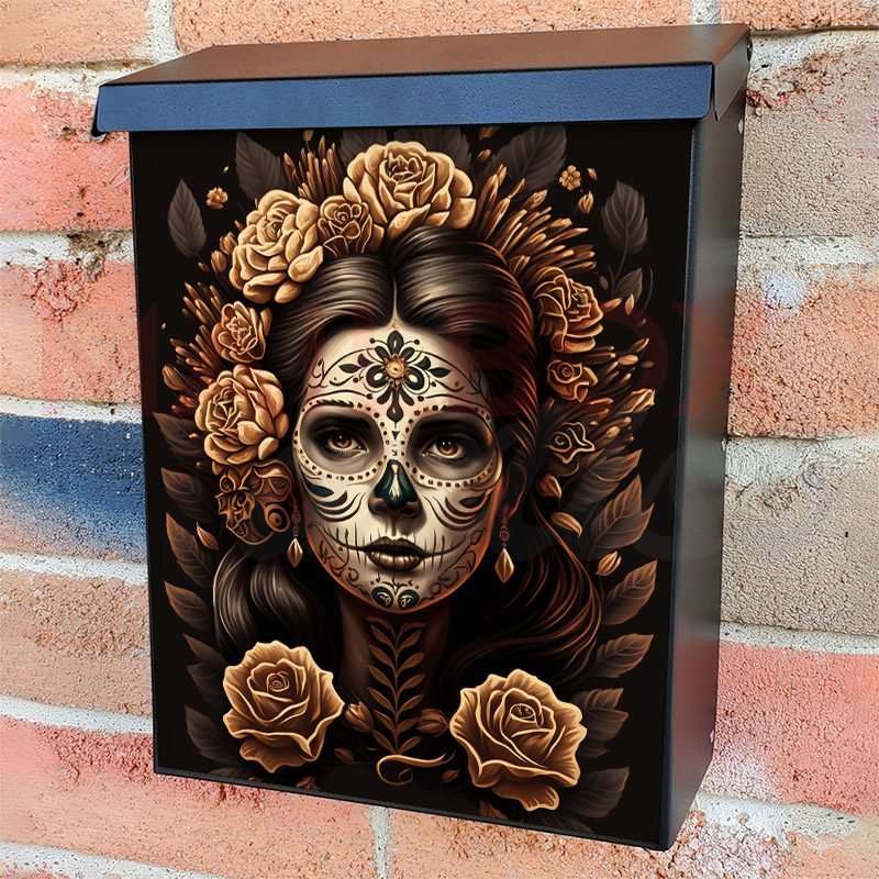 This Sugar Skull Faced Women With Flowers mailbox design was created by Krisztina Soos