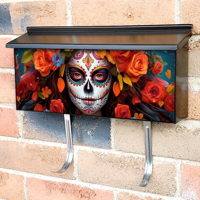 Sugar Skull Female With Red And Orange Roses Townhouse Mailbox Cover