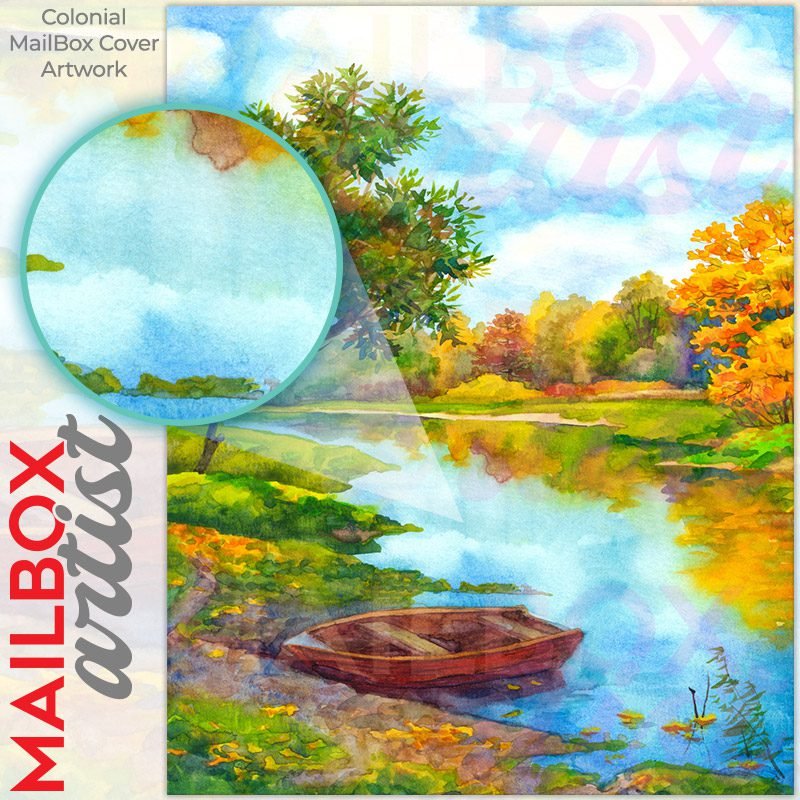 With this Summer at the River colonial mailbox cover it’s pretty easy to convert your mailbox to a special and unique item. These covers require a flat surface, so they work with colonial mailboxes that do not have any embossed decoration or signs. Magnetic mailbox covers work with steel colonial boxes only, while self-adhesive vinyl covers are available for aluminum, plastic and steel boxes. We also offer both self-adhesive and magnetic covers with regular opaque white vinyl or reflective vinyl, which works similarly to license plates or road signs. The reflective option makes the entire cover’s surface reflective, ensuring visibility at night. In case your mailbox doesn’t work with these covers, you can purchase the preinstalled cover on a brand new mailbox as well. Also, you can create your custom colonial mailbox cover using you own pictures, adding your name, street number, etc.