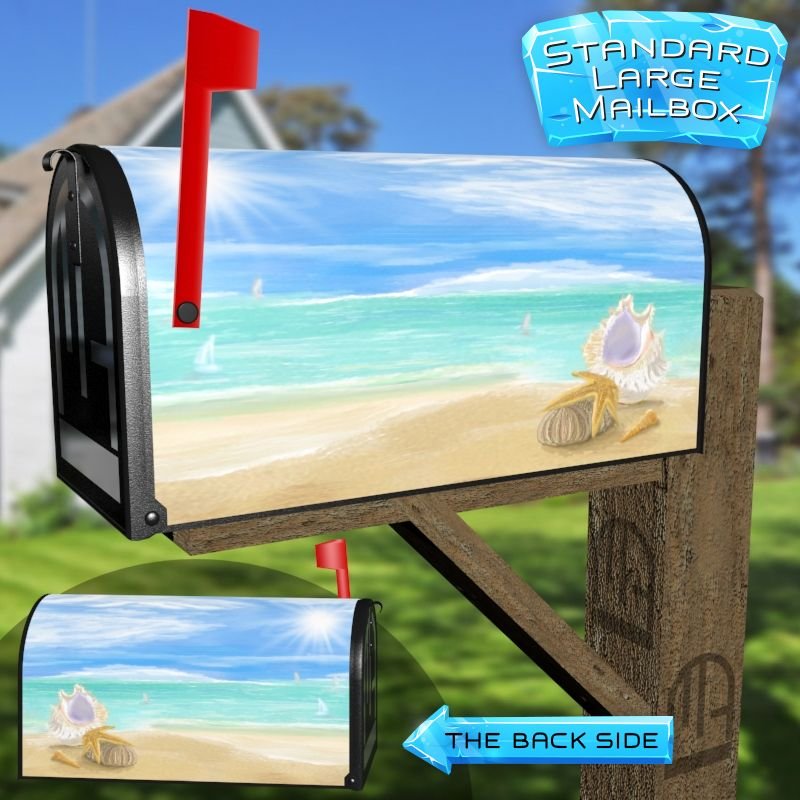Dressing up your rural farm mailbox with the Summer Beach Vacation mailbox cover is an easy way to convert it into a unique and special item. These covers require a smooth surface, so they are compatible with rural farm mailboxes that do not have any embossed decorations or signs. Magnetic mailbox covers work with steel boxes only, while self-adhesive vinyl covers are available for aluminum, plastic and steel boxes. If your mailbox is not compatible with these covers, you can purchase a brand new mailbox with a preinstalled cover. Additionally, you have the option to create a custom rural farm mailbox cover with your own pictures, name, street number, etc.