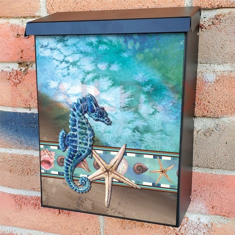 With this Summer By the Sea colonial mailbox cover it’s pretty easy to convert your mailbox to a special and unique item. These covers require a flat surface, so they work with colonial mailboxes that do not have any embossed decoration or signs. Magnetic mailbox covers work with steel colonial boxes only, while self-adhesive vinyl covers are available for aluminum, plastic and steel boxes. We also offer both self-adhesive and magnetic covers with regular opaque white vinyl or reflective vinyl, which works similarly to license plates or road signs. The reflective option makes the entire cover’s surface reflective, ensuring visibility at night. In case your mailbox doesn’t work with these covers, you can purchase the preinstalled cover on a brand new mailbox as well. Also, you can create your custom colonial mailbox cover using you own pictures, adding your name, street number, etc.