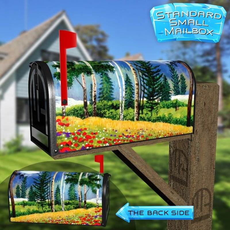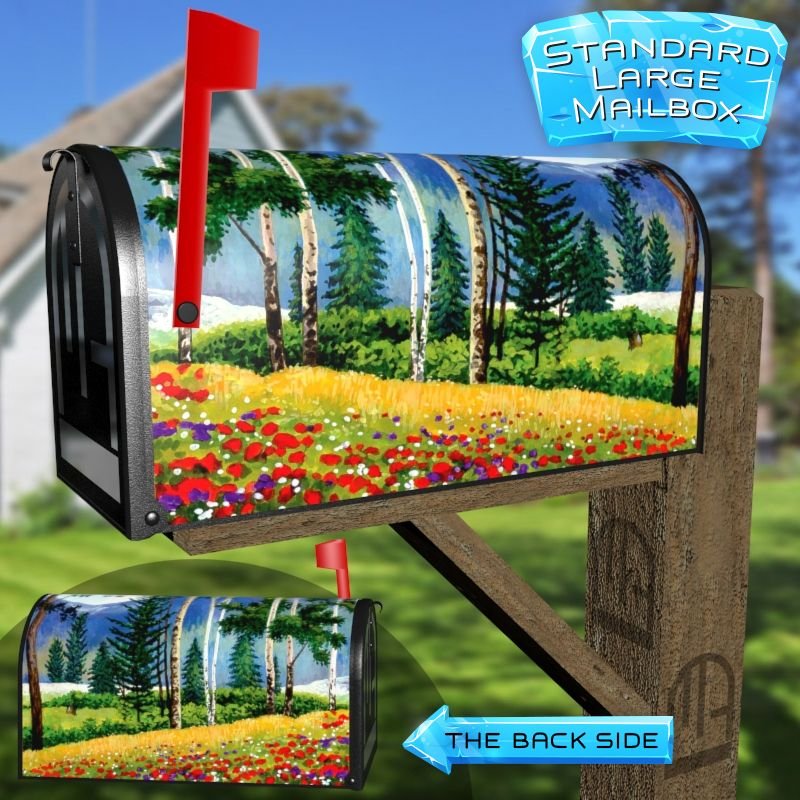 Dressing up your rural farm mailbox with the Summer Days at the Meadow mailbox cover is an easy way to convert it into a unique and special item. These covers require a smooth surface, so they are compatible with rural farm mailboxes that do not have any embossed decorations or signs. Magnetic mailbox covers work with steel boxes only, while self-adhesive vinyl covers are available for aluminum, plastic and steel boxes. If your mailbox is not compatible with these covers, you can purchase a brand new mailbox with a preinstalled cover. Additionally, you have the option to create a custom rural farm mailbox cover with your own pictures, name, street number, etc.