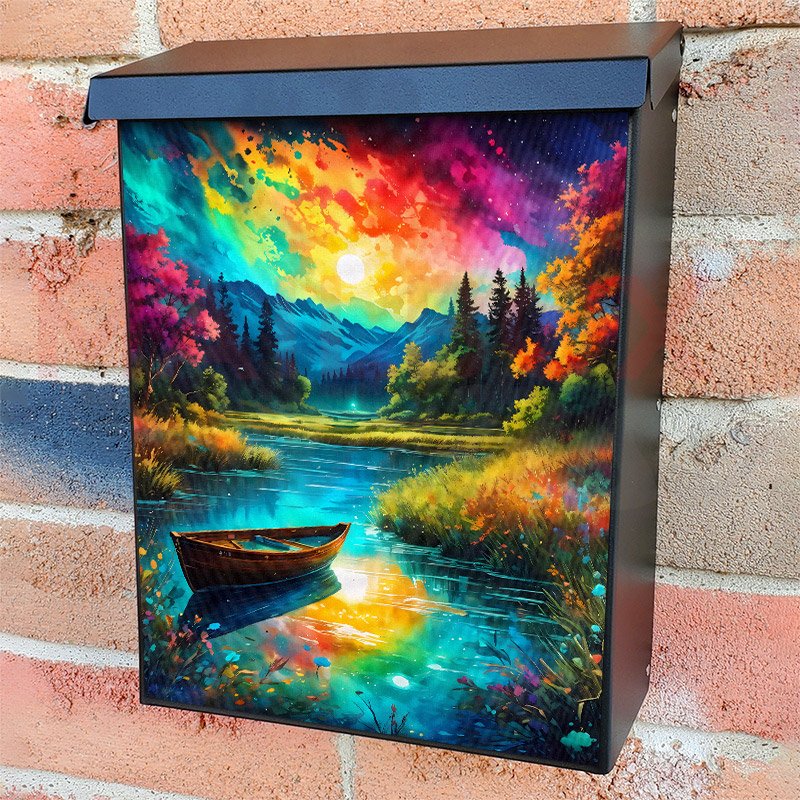 With this Summer Holiday at the Lake 2 colonial mailbox cover it’s pretty easy to convert your mailbox to a special and unique item. These covers require a flat surface, so they work with colonial mailboxes that do not have any embossed decoration or signs. Magnetic mailbox covers work with steel colonial boxes only, while self-adhesive vinyl covers are available for aluminum, plastic and steel boxes. We also offer both self-adhesive and magnetic covers with regular opaque white vinyl or reflective vinyl, which works similarly to license plates or road signs. The reflective option makes the entire cover’s surface reflective, ensuring visibility at night. In case your mailbox doesn’t work with these covers, you can purchase the preinstalled cover on a brand new mailbox as well. Also, you can create your custom colonial mailbox cover using you own pictures, adding your name, street number, etc.