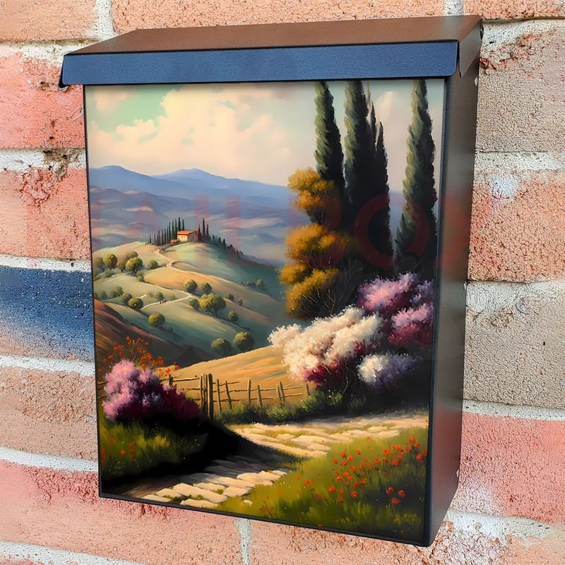 With this Summer in Provence #2 colonial mailbox cover it’s pretty easy to convert your mailbox to a special and unique item. These covers require a flat surface, so they work with colonial mailboxes that do not have any embossed decoration or signs. In case your mailbox doesn’t work with these covers, you can purchase the preinstalled cover on a brand new mailbox as well. Also, you can create your custom colonial mailbox cover using you own pictures, adding your name, street number, etc.