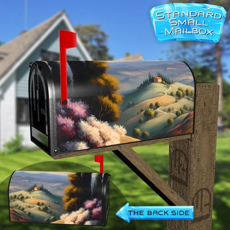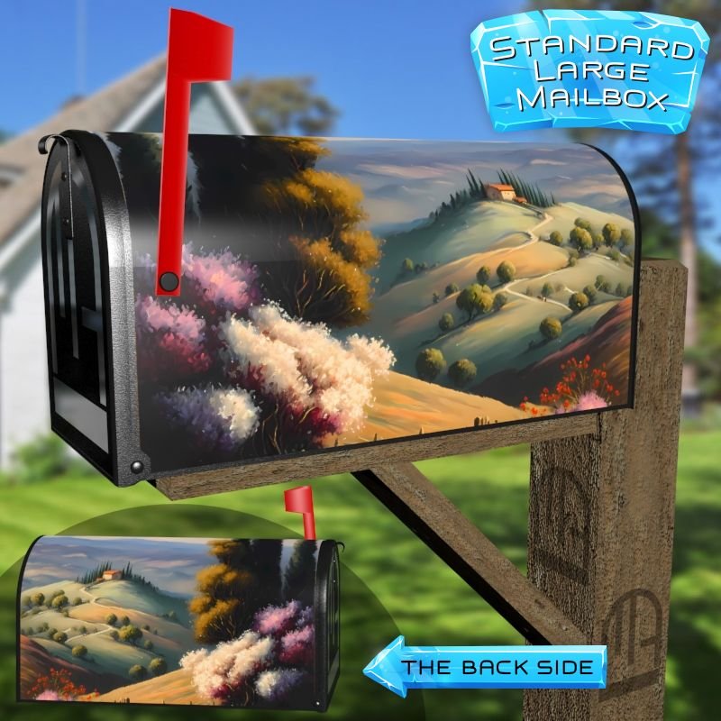 Dressing up your rural farm mailbox with the Summer in Provence #2 mailbox cover is an easy way to convert it into a unique and special item. These covers require a smooth surface, so they are compatible with rural farm mailboxes that do not have any embossed decorations or signs. Magnetic mailbox covers work with steel boxes only, while self-adhesive vinyl covers are available for aluminum, plastic and steel boxes. If your mailbox is not compatible with these covers, you can purchase a brand new mailbox with a preinstalled cover. Additionally, you have the option to create a custom rural farm mailbox cover with your own pictures, name, street number, etc.