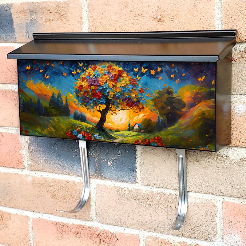 Applying your Summer Morning in the Countryside townhouse / ranch mailbox cover it’s pretty easy to convert your mailbox to a special and unique item. These covers require a flat surface, so they work with townhouse / ranch mailboxes that do not have any embossed decoration or signs. Magnetic mailbox covers work with steel boxes, for aluminum and plastic boxes we offer the self-adhesive vinyl covers. In case your mailbox doesn’t work with these covers, you can purchase the preinstalled cover on a brand new mailbox as well. Also, you can create your custom townhouse / ranch mailbox cover using you own pictures, adding your name, street number, etc.