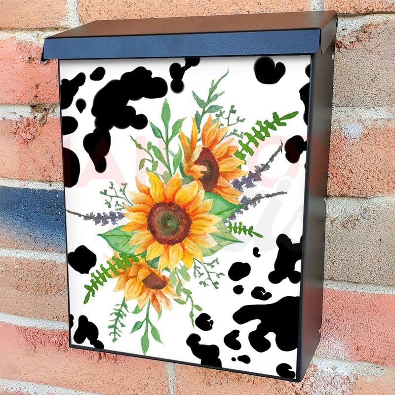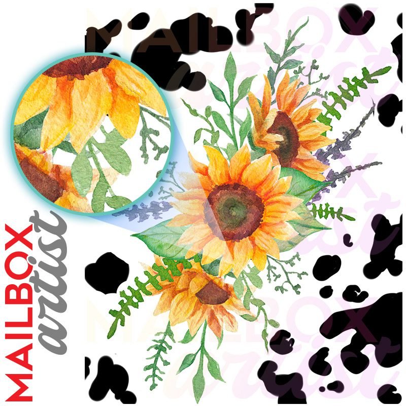 This Sunflowers on Cowhide Pattern mailbox design was created by Krisztina Soos