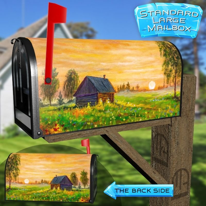 Dressing up your rural farm mailbox with the Sunset Farmhouse mailbox cover is an easy way to convert it into a unique and special item. These covers require a smooth surface, so they are compatible with rural farm mailboxes that do not have any embossed decorations or signs. Magnetic mailbox covers work with steel boxes only, while self-adhesive vinyl covers are available for aluminum, plastic and steel boxes. If your mailbox is not compatible with these covers, you can purchase a brand new mailbox with a preinstalled cover. Additionally, you have the option to create a custom rural farm mailbox cover with your own pictures, name, street number, etc.