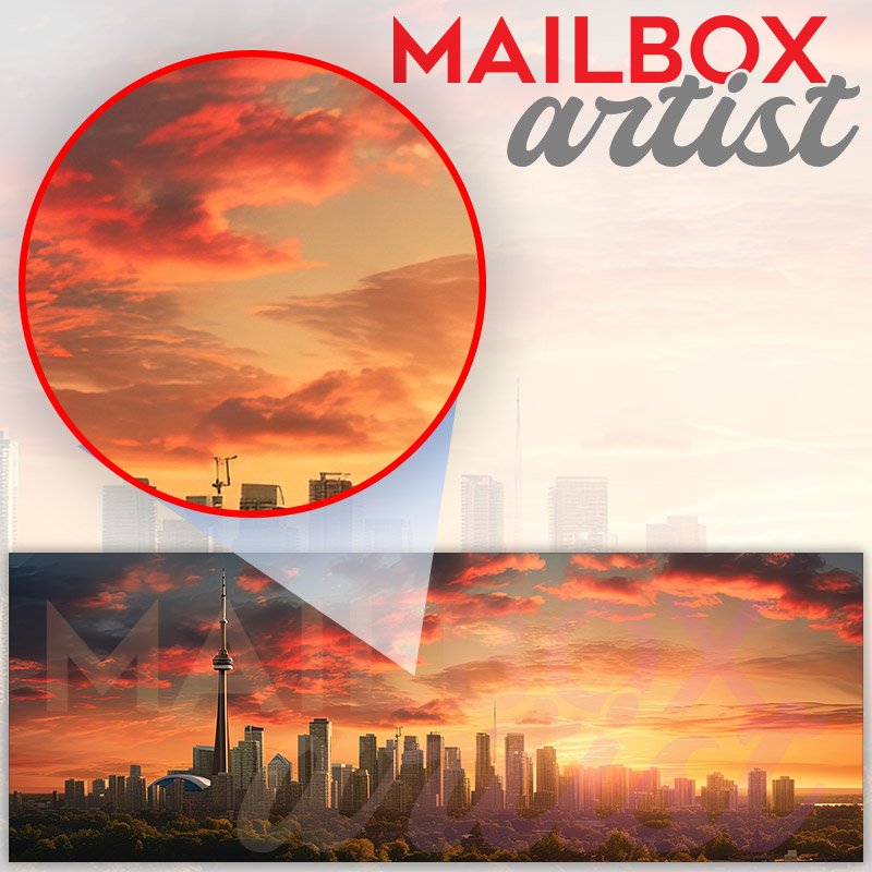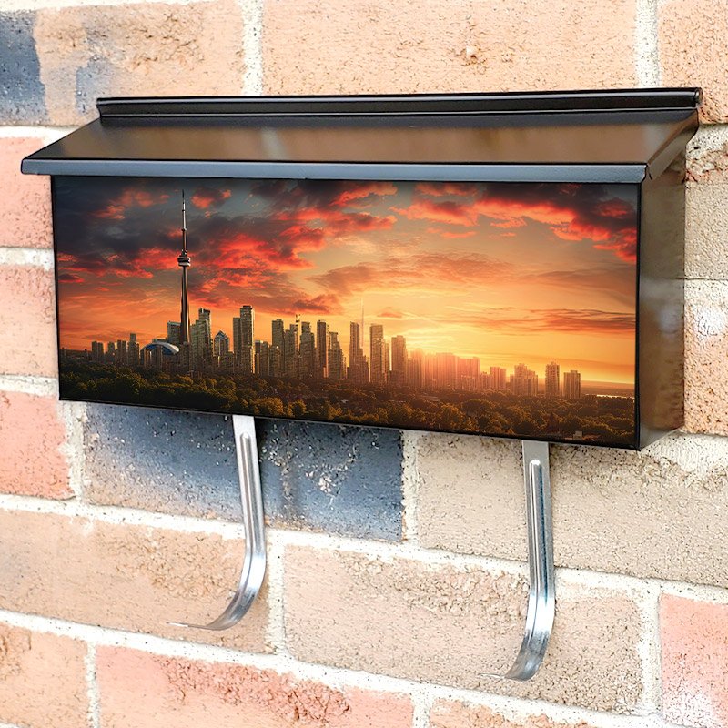 Applying your Sunset In The Western Area Of Toronto And Mississauga townhouse / ranch mailbox cover it’s pretty easy to convert your mailbox to a special and unique item. These covers require a flat surface, so they work with townhouse / ranch mailboxes that do not have any embossed decoration or signs. Magnetic mailbox covers work with steel boxes, for aluminum and plastic boxes we offer the self-adhesive vinyl covers. In case your mailbox doesn’t work with these covers, you can purchase the preinstalled cover on a brand new mailbox as well. Also, you can create your custom townhouse / ranch mailbox cover using you own pictures, adding your name, street number, etc.
