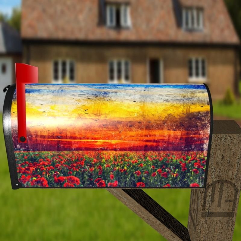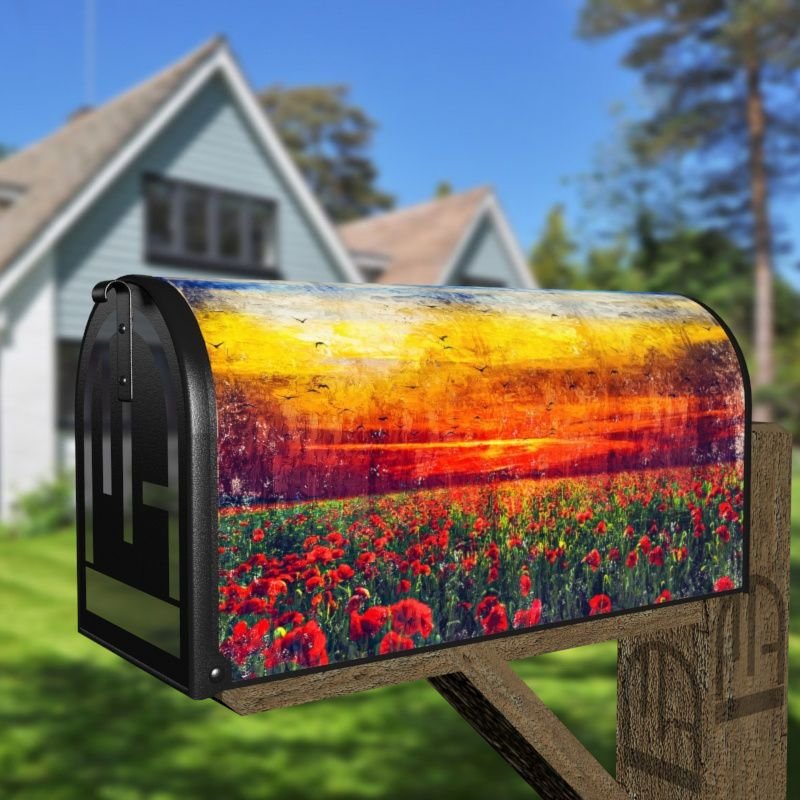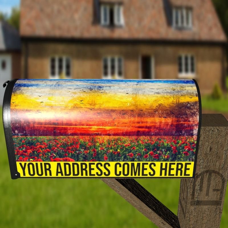 Grab this creative Sunset Poppy Field rural/curbside/farm mailbox cover as self adhesive vinyl or magnetic cover. Our magnetic covers have the magnetic surface under the whole design, not only two magnet strips like in cheaper products. We also offer both the self adhesive and the magnetic covers with regular opaque white vinyl or reflective vinyl which works the same way as the licence plates or road signs; pretty visible at night. We make these covers for both large and small mailboxes.
