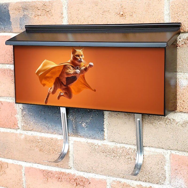 Applying your Supercat Superpet Cat As Superhero townhouse / ranch mailbox cover it’s pretty easy to convert your mailbox to a special and unique item. These covers require a flat surface, so they work with townhouse / ranch mailboxes that do not have any embossed decoration or signs. Magnetic mailbox covers work with steel boxes, for aluminum and plastic boxes we offer the self-adhesive vinyl covers. In case your mailbox doesn’t work with these covers, you can purchase the preinstalled cover on a brand new mailbox as well. Also, you can create your custom townhouse / ranch mailbox cover using you own pictures, adding your name, street number, etc.