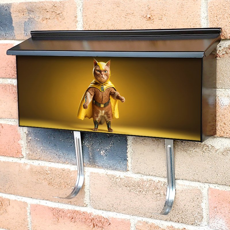 Applying your Superpet Cat As Superhero With Cape On Yellow Background townhouse / ranch mailbox cover it’s pretty easy to convert your mailbox to a special and unique item. These covers require a flat surface, so they work with townhouse / ranch mailboxes that do not have any embossed decoration or signs. Magnetic mailbox covers work with steel boxes, for aluminum and plastic boxes we offer the self-adhesive vinyl covers. In case your mailbox doesn’t work with these covers, you can purchase the preinstalled cover on a brand new mailbox as well. Also, you can create your custom townhouse / ranch mailbox cover using you own pictures, adding your name, street number, etc.