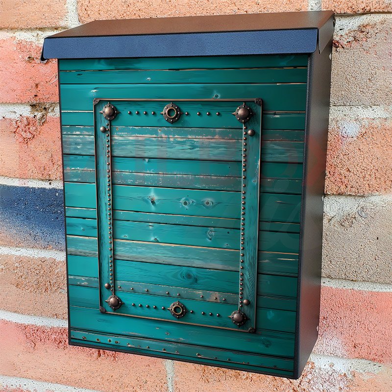 This Teal Wood with Metal Ornaments mailbox design was created by Krisztina Soos
