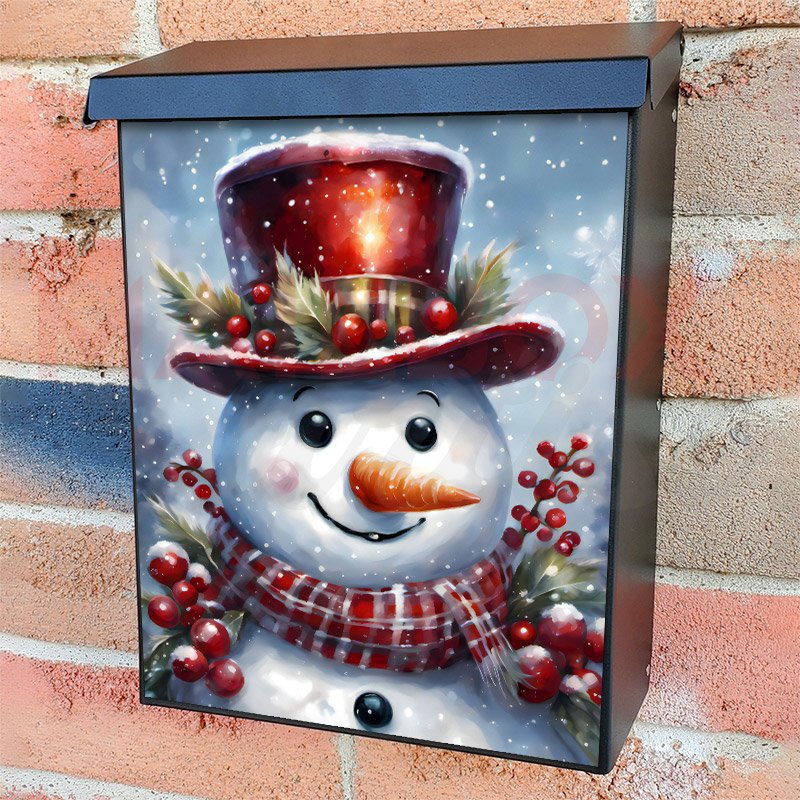 With this The Cutest Snowman colonial mailbox cover it’s pretty easy to convert your mailbox to a special and unique item. These covers require a flat surface, so they work with colonial mailboxes that do not have any embossed decoration or signs. Magnetic mailbox covers work with steel colonial boxes only, while self-adhesive vinyl covers are available for aluminum, plastic and steel boxes. We also offer both self-adhesive and magnetic covers with regular opaque white vinyl or reflective vinyl, which works similarly to license plates or road signs. The reflective option makes the entire cover’s surface reflective, ensuring visibility at night. In case your mailbox doesn’t work with these covers, you can purchase the preinstalled cover on a brand new mailbox as well. Also, you can create your custom colonial mailbox cover using you own pictures, adding your name, street number, etc.