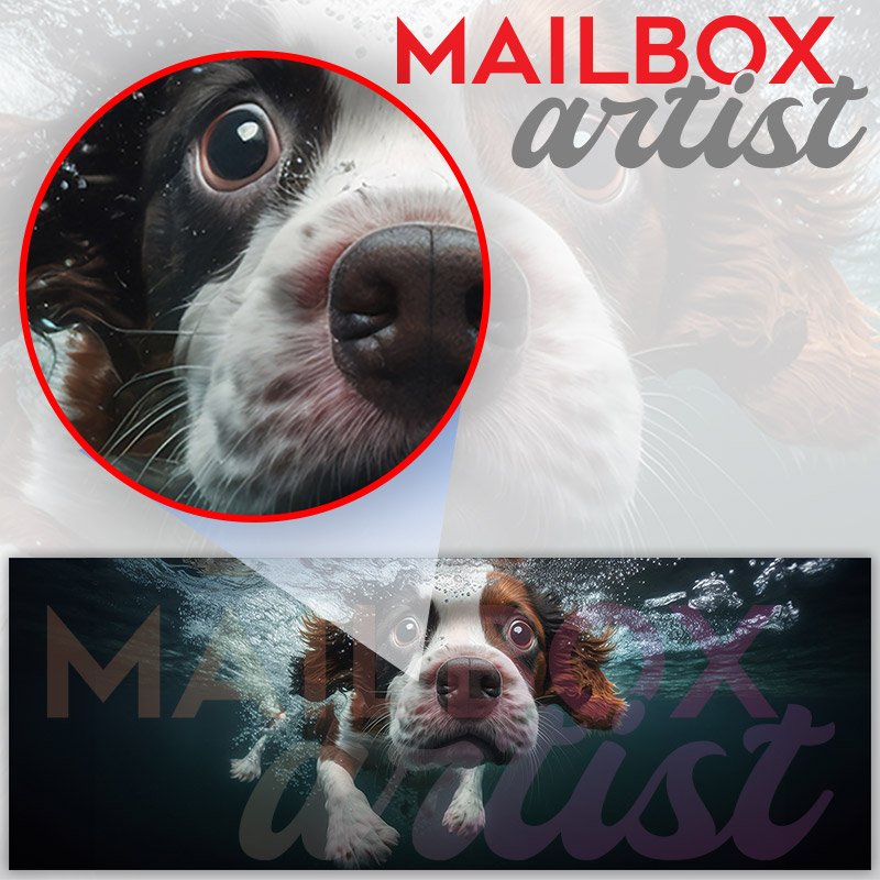 Applying your The Dog Is Swimming Underwater townhouse / ranch mailbox cover it’s pretty easy to convert your mailbox to a special and unique item. These covers require a flat surface, so they work with townhouse / ranch mailboxes that do not have any embossed decoration or signs. Magnetic mailbox covers work with steel boxes, for aluminum and plastic boxes we offer the self-adhesive vinyl covers. In case your mailbox doesn’t work with these covers, you can purchase the preinstalled cover on a brand new mailbox as well. Also, you can create your custom townhouse / ranch mailbox cover using you own pictures, adding your name, street number, etc.