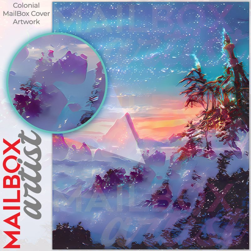With this The First Snow in the Mountains colonial mailbox cover it’s pretty easy to convert your mailbox to a special and unique item. These covers require a flat surface, so they work with colonial mailboxes that do not have any embossed decoration or signs. Magnetic mailbox covers work with steel colonial boxes only, while self-adhesive vinyl covers are available for aluminum, plastic and steel boxes. We also offer both self-adhesive and magnetic covers with regular opaque white vinyl or reflective vinyl, which works similarly to license plates or road signs. The reflective option makes the entire cover’s surface reflective, ensuring visibility at night. In case your mailbox doesn’t work with these covers, you can purchase the preinstalled cover on a brand new mailbox as well. Also, you can create your custom colonial mailbox cover using you own pictures, adding your name, street number, etc.