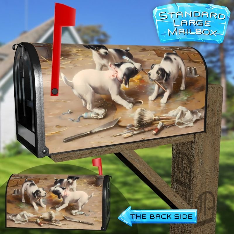 Dressing up your rural farm mailbox with The Painters Dispute by Carl Reichert mailbox cover is an easy way to convert it into a unique and special item. These covers require a smooth surface, so they are compatible with rural farm mailboxes that do not have any embossed decorations or signs. Magnetic mailbox covers work with steel boxes only, while self-adhesive vinyl covers are available for aluminum, plastic and steel boxes. If your mailbox is not compatible with these covers, you can purchase a brand new mailbox with a preinstalled cover. Additionally, you have the option to create a custom rural farm mailbox cover with your own pictures, name, street number, etc.