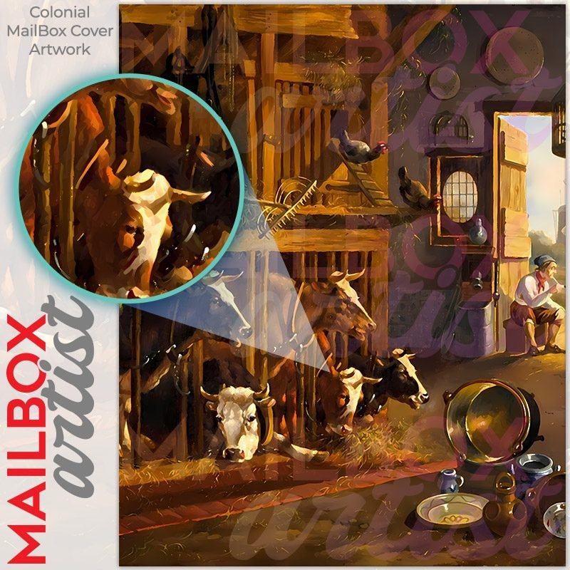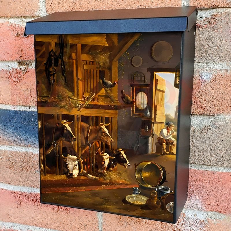 With this The Stall Interior by A. Verhoesen colonial mailbox cover it’s pretty easy to convert your mailbox to a special and unique item. These covers require a flat surface, so they work with colonial mailboxes that do not have any embossed decoration or signs. Magnetic mailbox covers work with steel colonial boxes only, while self-adhesive vinyl covers are available for aluminum, plastic and steel boxes. We also offer both self-adhesive and magnetic covers with regular opaque white vinyl or reflective vinyl, which works similarly to license plates or road signs. The reflective option makes the entire cover’s surface reflective, ensuring visibility at night. In case your mailbox doesn’t work with these covers, you can purchase the preinstalled cover on a brand new mailbox as well. Also, you can create your custom colonial mailbox cover using you own pictures, adding your name, street number, etc.