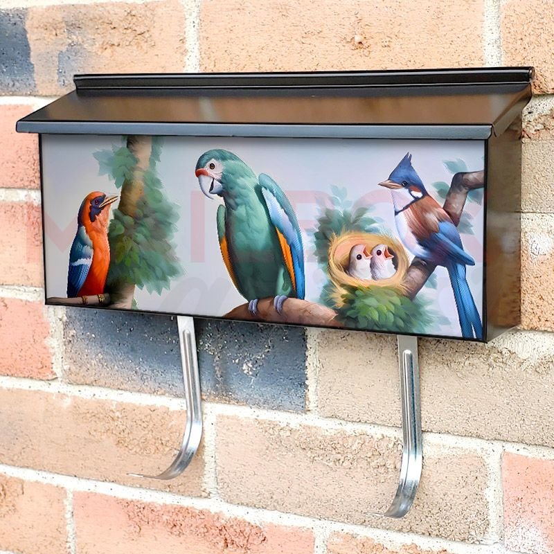 Applying your The Tweeting Hour townhouse / ranch mailbox cover it’s pretty easy to convert your mailbox to a special and unique item. These covers require a flat surface, so they work with townhouse / ranch mailboxes that do not have any embossed decoration or signs. Magnetic mailbox covers work with steel boxes, for aluminum and plastic boxes we offer the self-adhesive vinyl covers. In case your mailbox doesn’t work with these covers, you can purchase the preinstalled cover on a brand new mailbox as well. Also, you can create your custom townhouse / ranch mailbox cover using you own pictures, adding your name, street number, etc.