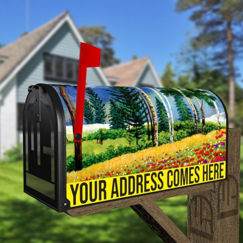 Grab this creative The Wildflower Glade rural/curbside/farm mailbox cover as self adhesive vinyl or magnetic cover. Our magnetic covers have the magnetic surface under the whole design, not only two magnet strips like in cheaper products. We also offer both the self adhesive and the magnetic covers with regular opaque white vinyl or reflective vinyl which works the same way as the licence plates or road signs; pretty visible at night. We make these covers for both large and small mailboxes.