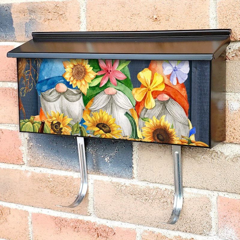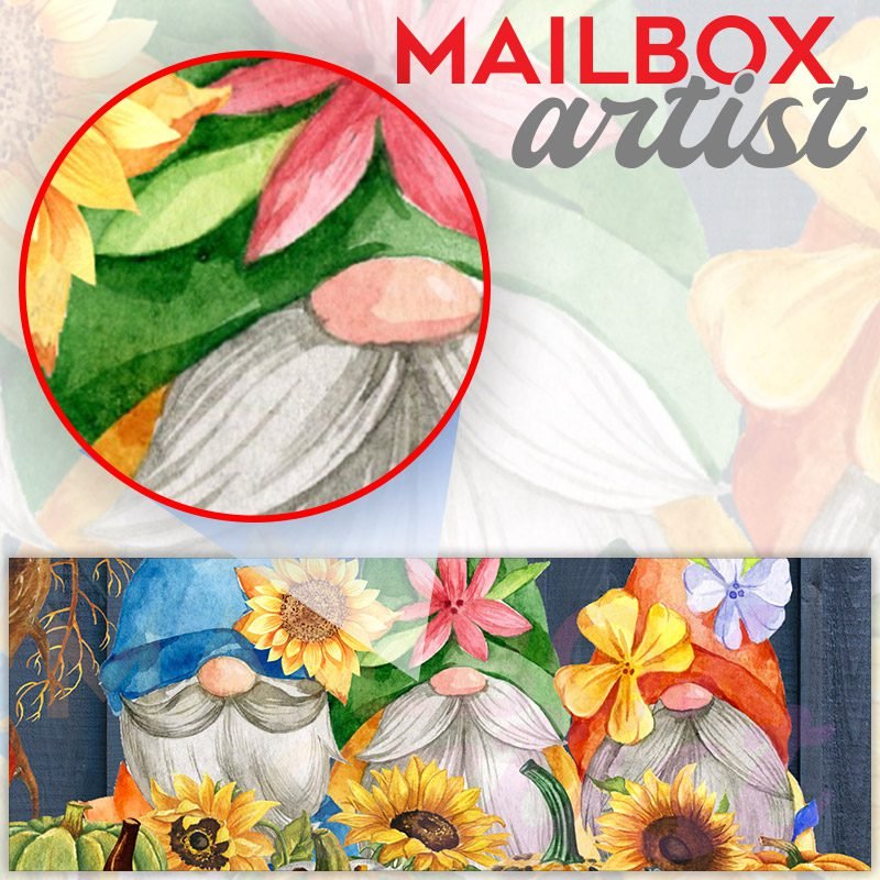 Applying your Three Autumn Gnomes townhouse / ranch mailbox cover it’s pretty easy to convert your mailbox to a special and unique item. These covers require a flat surface, so they work with townhouse / ranch mailboxes that do not have any embossed decoration or signs. Magnetic mailbox covers work with steel boxes, for aluminum and plastic boxes we offer the self-adhesive vinyl covers. In case your mailbox doesn’t work with these covers, you can purchase the preinstalled cover on a brand new mailbox as well. Also, you can create your custom townhouse / ranch mailbox cover using you own pictures, adding your name, street number, etc.