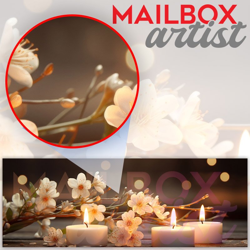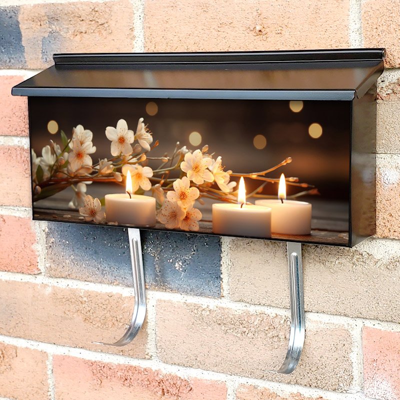Applying your Three Candles With Blossom Flower On Table townhouse / ranch mailbox cover it’s pretty easy to convert your mailbox to a special and unique item. These covers require a flat surface, so they work with townhouse / ranch mailboxes that do not have any embossed decoration or signs. Magnetic mailbox covers work with steel boxes, for aluminum and plastic boxes we offer the self-adhesive vinyl covers. In case your mailbox doesn’t work with these covers, you can purchase the preinstalled cover on a brand new mailbox as well. Also, you can create your custom townhouse / ranch mailbox cover using you own pictures, adding your name, street number, etc.