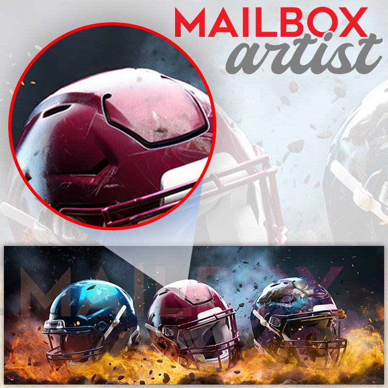 This Three Football Helmets On The Ground mailbox design was created by Krisztina Soos