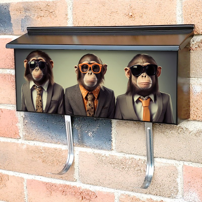 Applying your Three Monkeys In Sunglasses Are Dressed Up 2 townhouse / ranch mailbox cover it’s pretty easy to convert your mailbox to a special and unique item. These covers require a flat surface, so they work with townhouse / ranch mailboxes that do not have any embossed decoration or signs. Magnetic mailbox covers work with steel boxes, for aluminum and plastic boxes we offer the self-adhesive vinyl covers. In case your mailbox doesn’t work with these covers, you can purchase the preinstalled cover on a brand new mailbox as well. Also, you can create your custom townhouse / ranch mailbox cover using you own pictures, adding your name, street number, etc.