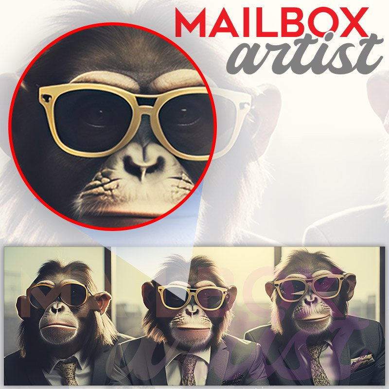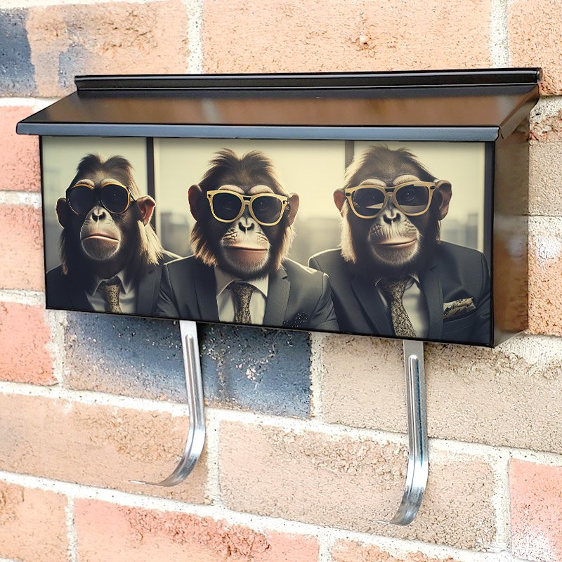 Applying your Three Monkeys In Sunglasses Are Dressed Up 3 townhouse / ranch mailbox cover it’s pretty easy to convert your mailbox to a special and unique item. These covers require a flat surface, so they work with townhouse / ranch mailboxes that do not have any embossed decoration or signs. Magnetic mailbox covers work with steel boxes, for aluminum and plastic boxes we offer the self-adhesive vinyl covers. In case your mailbox doesn’t work with these covers, you can purchase the preinstalled cover on a brand new mailbox as well. Also, you can create your custom townhouse / ranch mailbox cover using you own pictures, adding your name, street number, etc.