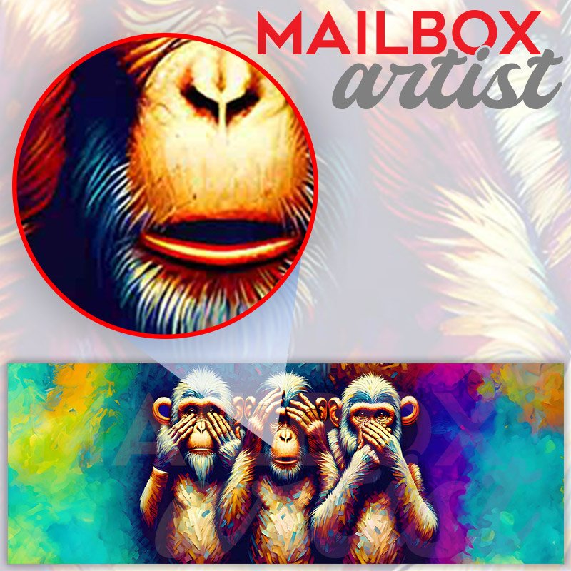 This Three Wise Monkeys mailbox design was created by Krisztina Soos