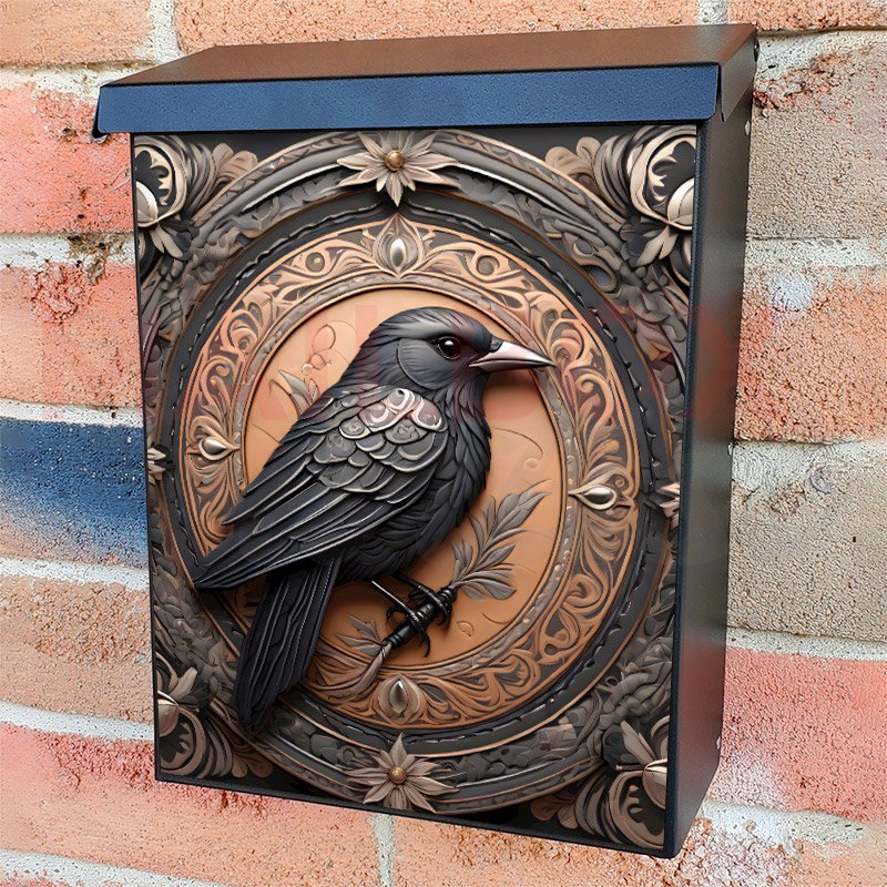 This Tooled Leather Raven mailbox design was created by Krisztina Soos