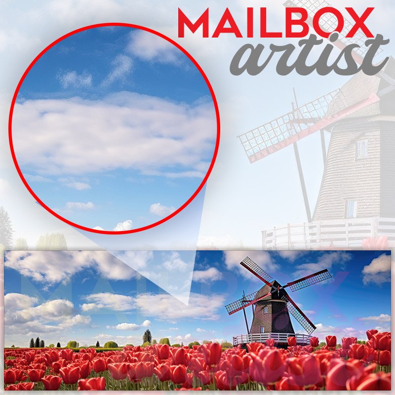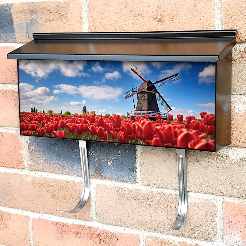 Applying your Traditional Dutch Windmill And Colorful Red Tulips townhouse / ranch mailbox cover it’s pretty easy to convert your mailbox to a special and unique item. These covers require a flat surface, so they work with townhouse / ranch mailboxes that do not have any embossed decoration or signs. Magnetic mailbox covers work with steel boxes, for aluminum and plastic boxes we offer the self-adhesive vinyl covers. In case your mailbox doesn’t work with these covers, you can purchase the preinstalled cover on a brand new mailbox as well. Also, you can create your custom townhouse / ranch mailbox cover using you own pictures, adding your name, street number, etc.