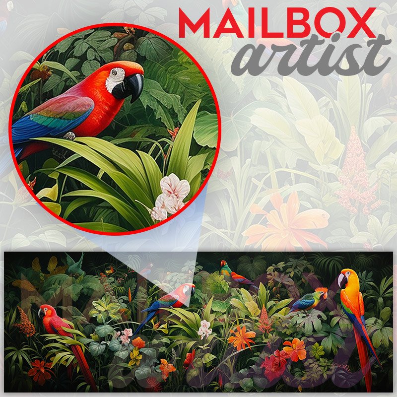 This Tropical Plants And Parrots mailbox design was created by Krisztina Soos