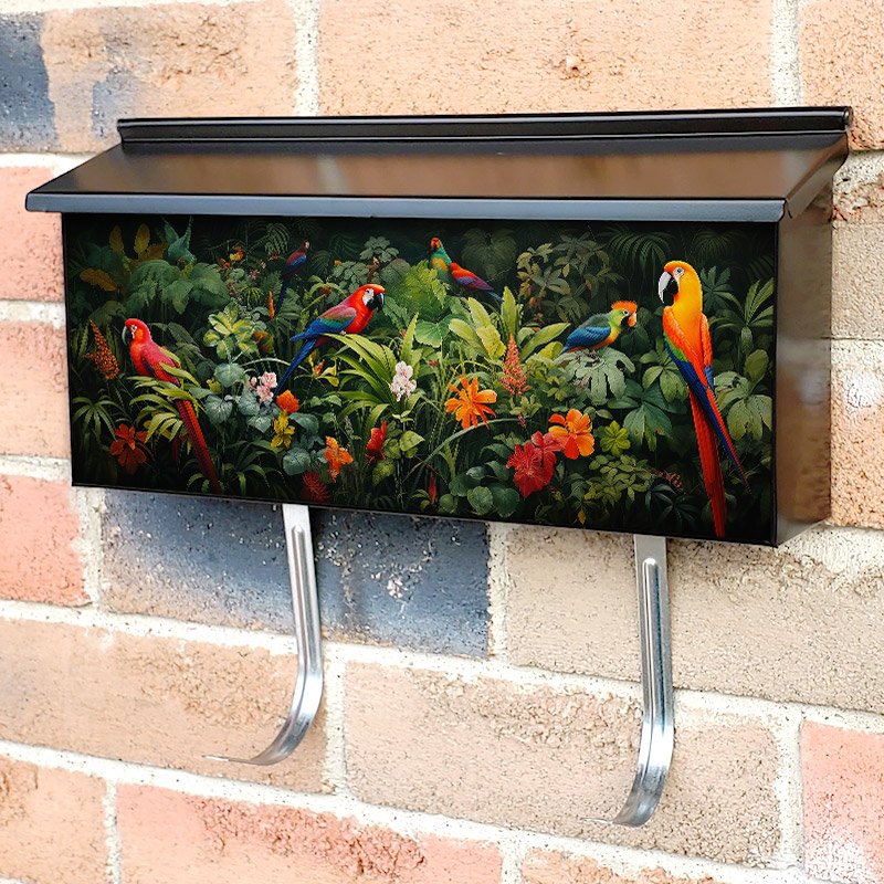 Tropical Plants And Parrots Townhouse Mailbox Cover