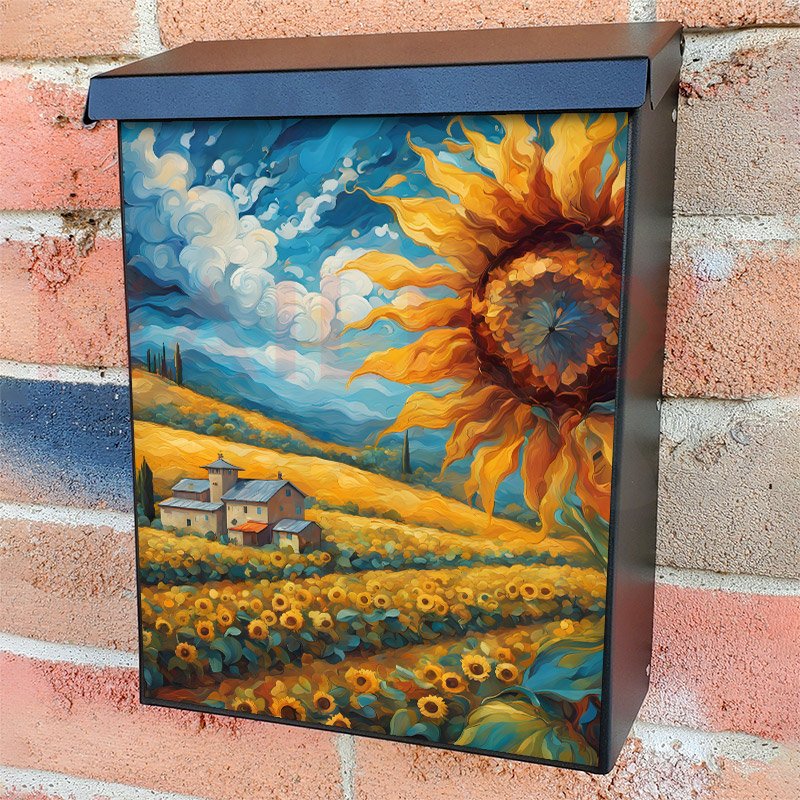 This Tuscan Evening and Sunflowers mailbox design was created by Krisztina Soos