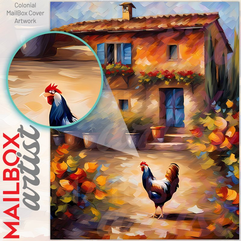 With this Tuscan Farmhouse Chicken colonial mailbox cover it’s pretty easy to convert your mailbox to a special and unique item. These covers require a flat surface, so they work with colonial mailboxes that do not have any embossed decoration or signs. Magnetic mailbox covers work with steel colonial boxes only, while self-adhesive vinyl covers are available for aluminum, plastic and steel boxes. We also offer both self-adhesive and magnetic covers with regular opaque white vinyl or reflective vinyl, which works similarly to license plates or road signs. The reflective option makes the entire cover’s surface reflective, ensuring visibility at night. In case your mailbox doesn’t work with these covers, you can purchase the preinstalled cover on a brand new mailbox as well. Also, you can create your custom colonial mailbox cover using you own pictures, adding your name, street number, etc.