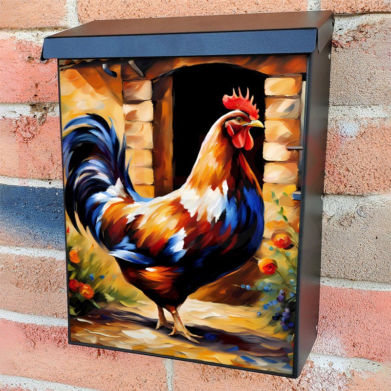 With this Tuscan Farmhouse Rooster colonial mailbox cover it’s pretty easy to convert your mailbox to a special and unique item. These covers require a flat surface, so they work with colonial mailboxes that do not have any embossed decoration or signs. Magnetic mailbox covers work with steel colonial boxes only, while self-adhesive vinyl covers are available for aluminum, plastic and steel boxes. We also offer both self-adhesive and magnetic covers with regular opaque white vinyl or reflective vinyl, which works similarly to license plates or road signs. The reflective option makes the entire cover’s surface reflective, ensuring visibility at night. In case your mailbox doesn’t work with these covers, you can purchase the preinstalled cover on a brand new mailbox as well. Also, you can create your custom colonial mailbox cover using you own pictures, adding your name, street number, etc.