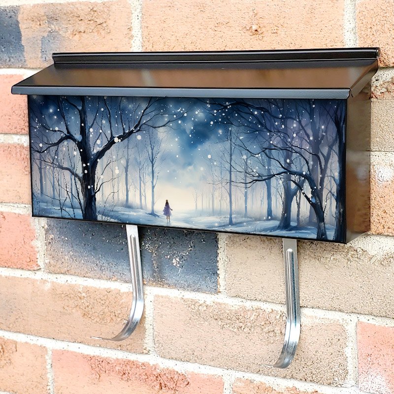 Applying your Twinkling Fairy Lights In Snow Scene townhouse / ranch mailbox cover it’s pretty easy to convert your mailbox to a special and unique item. These covers require a flat surface, so they work with townhouse / ranch mailboxes that do not have any embossed decoration or signs. Magnetic mailbox covers work with steel boxes, for aluminum and plastic boxes we offer the self-adhesive vinyl covers. In case your mailbox doesn’t work with these covers, you can purchase the preinstalled cover on a brand new mailbox as well. Also, you can create your custom townhouse / ranch mailbox cover using you own pictures, adding your name, street number, etc.