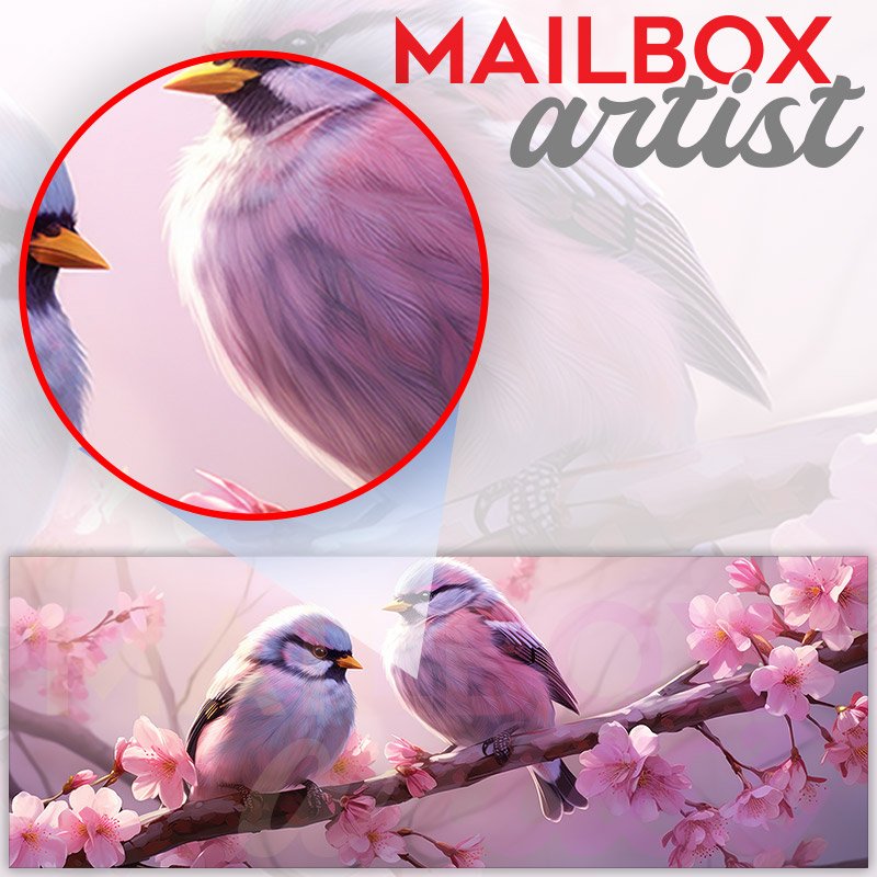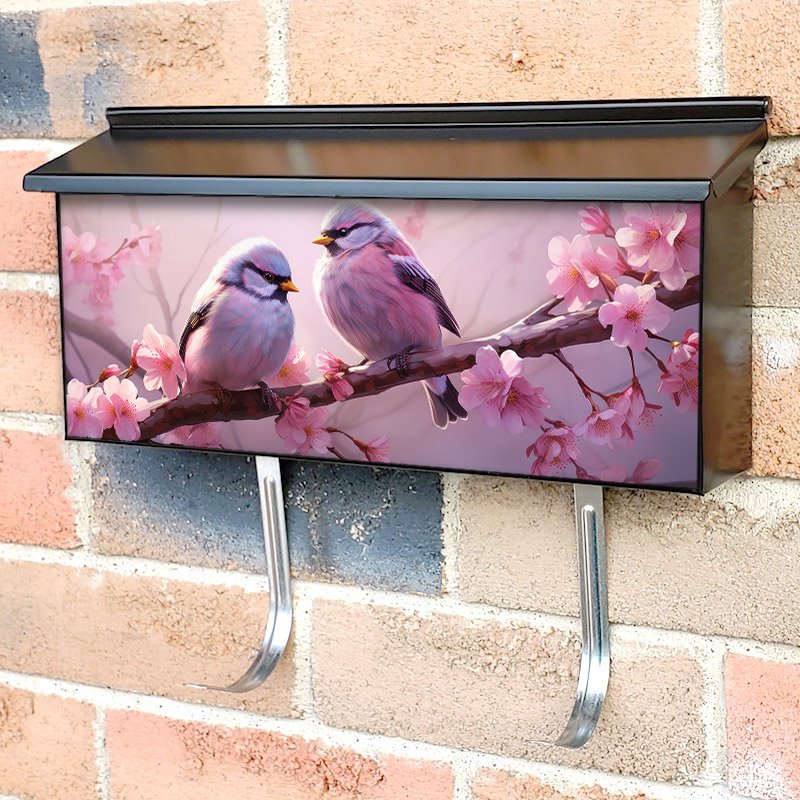 Applying your Two Birds Are Seated On A Pink Blossom Branch 6 townhouse / ranch mailbox cover it’s pretty easy to convert your mailbox to a special and unique item. These covers require a flat surface, so they work with townhouse / ranch mailboxes that do not have any embossed decoration or signs. Magnetic mailbox covers work with steel boxes, for aluminum and plastic boxes we offer the self-adhesive vinyl covers. In case your mailbox doesn’t work with these covers, you can purchase the preinstalled cover on a brand new mailbox as well. Also, you can create your custom townhouse / ranch mailbox cover using you own pictures, adding your name, street number, etc.