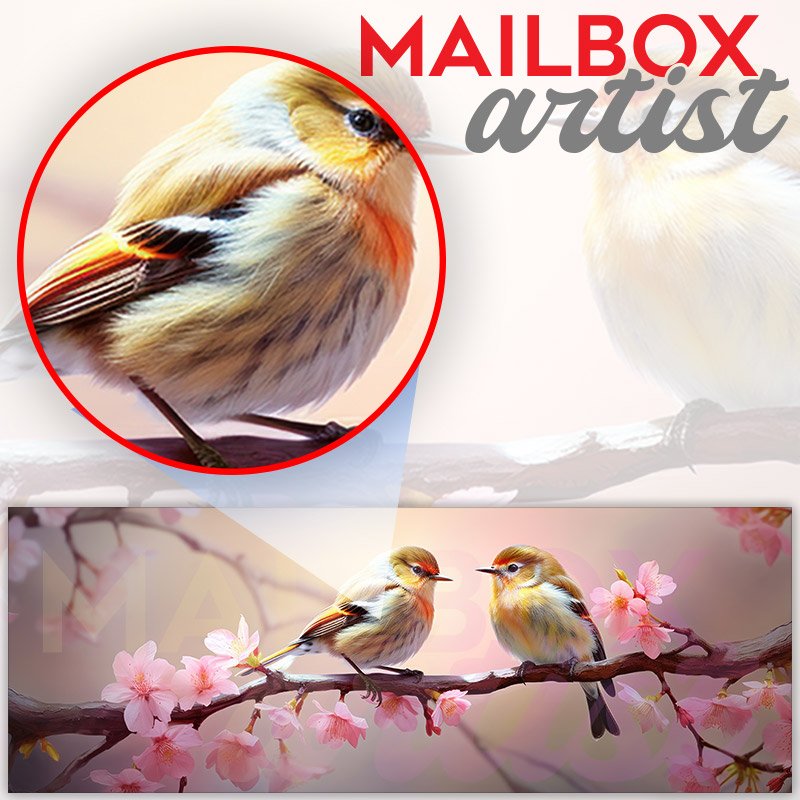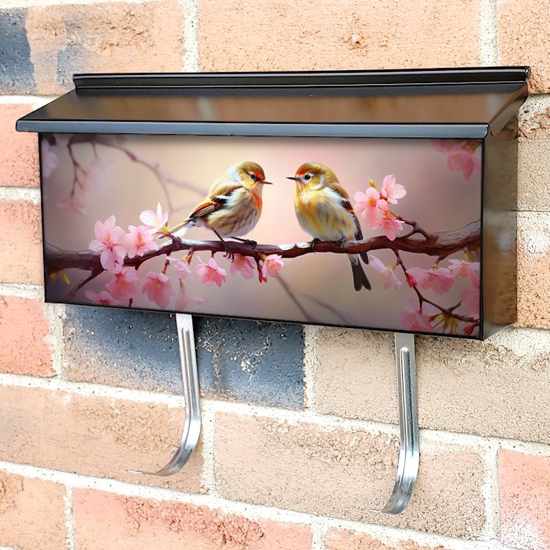 Applying your Two Birds Are Seated On A Pink Blossom Branch 7 townhouse / ranch mailbox cover it’s pretty easy to convert your mailbox to a special and unique item. These covers require a flat surface, so they work with townhouse / ranch mailboxes that do not have any embossed decoration or signs. Magnetic mailbox covers work with steel boxes, for aluminum and plastic boxes we offer the self-adhesive vinyl covers. In case your mailbox doesn’t work with these covers, you can purchase the preinstalled cover on a brand new mailbox as well. Also, you can create your custom townhouse / ranch mailbox cover using you own pictures, adding your name, street number, etc.