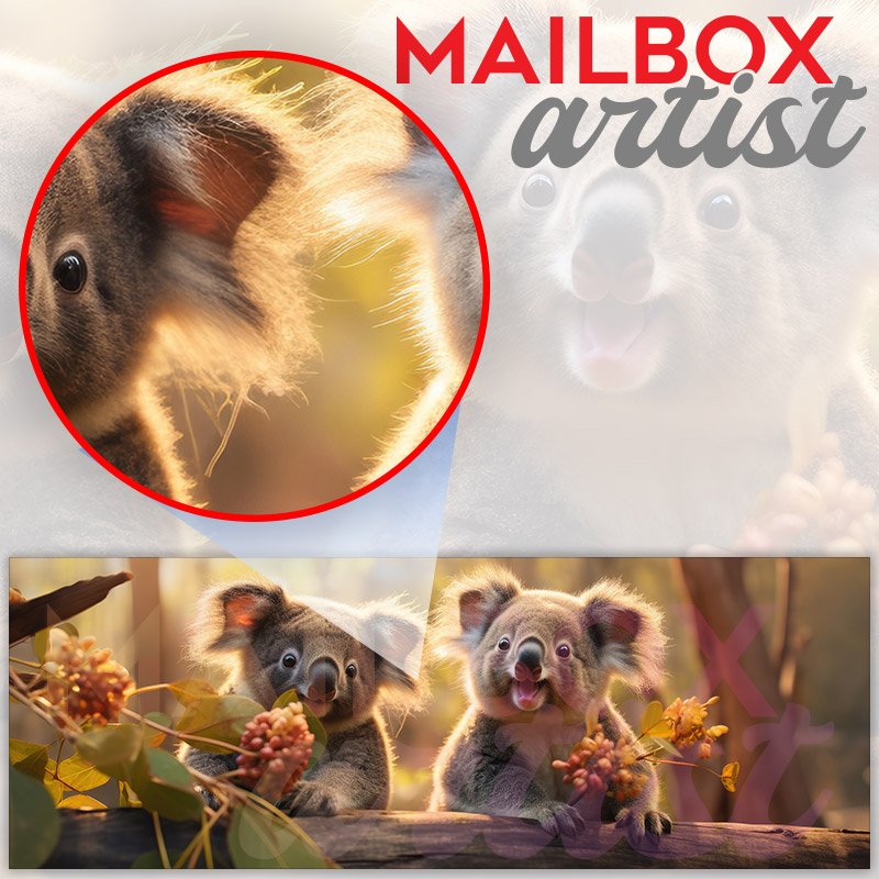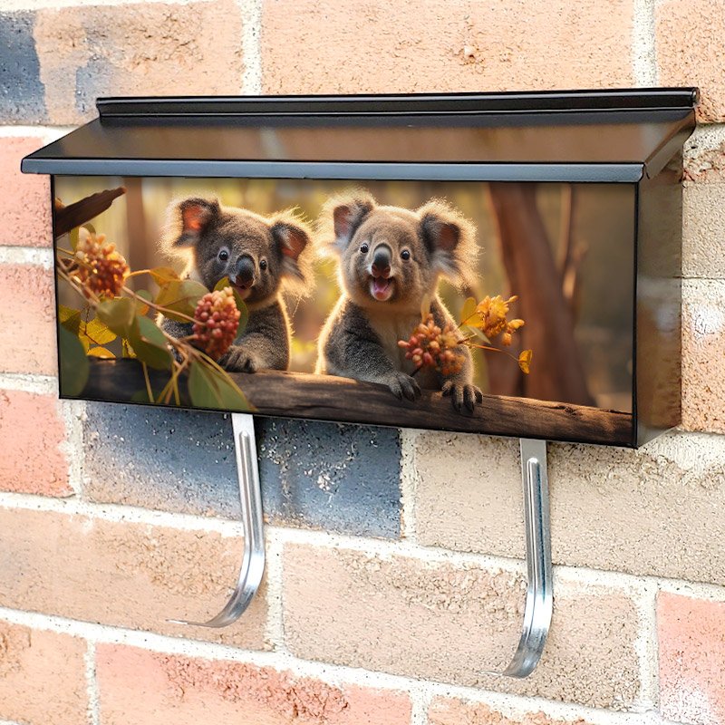 Applying your Two Cute Koalas On Branch Of Eucalyptus Tree townhouse / ranch mailbox cover it’s pretty easy to convert your mailbox to a special and unique item. These covers require a flat surface, so they work with townhouse / ranch mailboxes that do not have any embossed decoration or signs. Magnetic mailbox covers work with steel boxes, for aluminum and plastic boxes we offer the self-adhesive vinyl covers. In case your mailbox doesn’t work with these covers, you can purchase the preinstalled cover on a brand new mailbox as well. Also, you can create your custom townhouse / ranch mailbox cover using you own pictures, adding your name, street number, etc.
