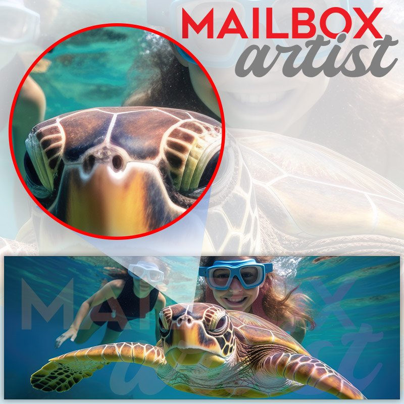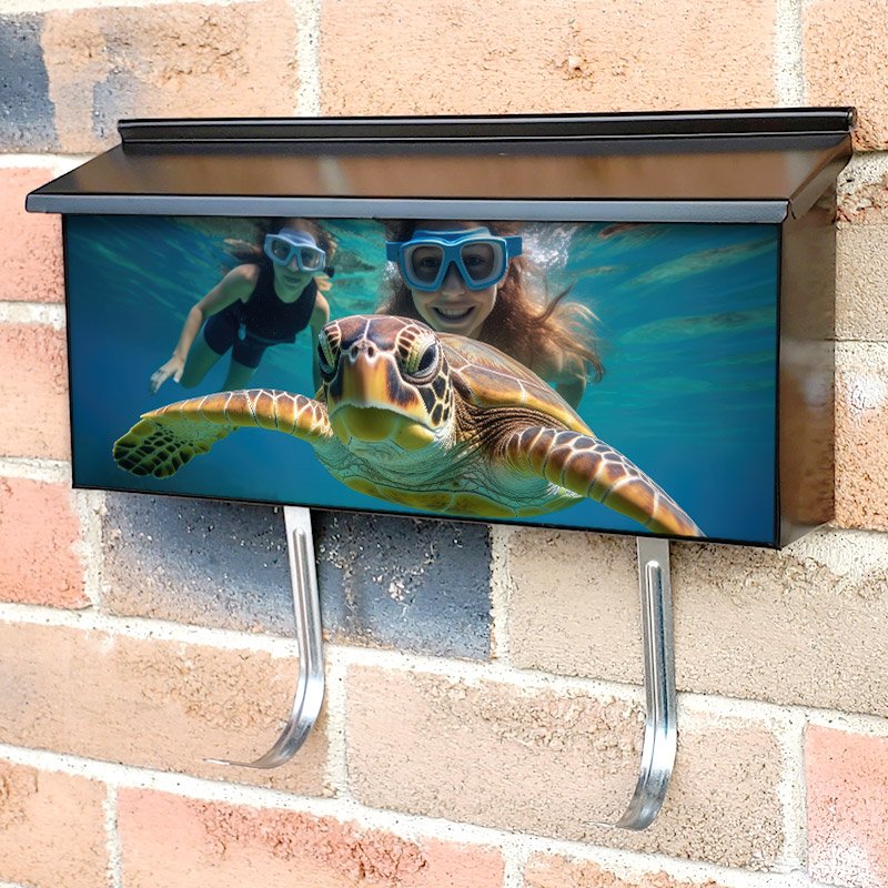 Applying your Two Girls And Turtle Underwater Snorkeling townhouse / ranch mailbox cover it’s pretty easy to convert your mailbox to a special and unique item. These covers require a flat surface, so they work with townhouse / ranch mailboxes that do not have any embossed decoration or signs. Magnetic mailbox covers work with steel boxes, for aluminum and plastic boxes we offer the self-adhesive vinyl covers. In case your mailbox doesn’t work with these covers, you can purchase the preinstalled cover on a brand new mailbox as well. Also, you can create your custom townhouse / ranch mailbox cover using you own pictures, adding your name, street number, etc.